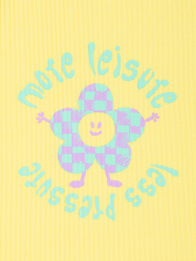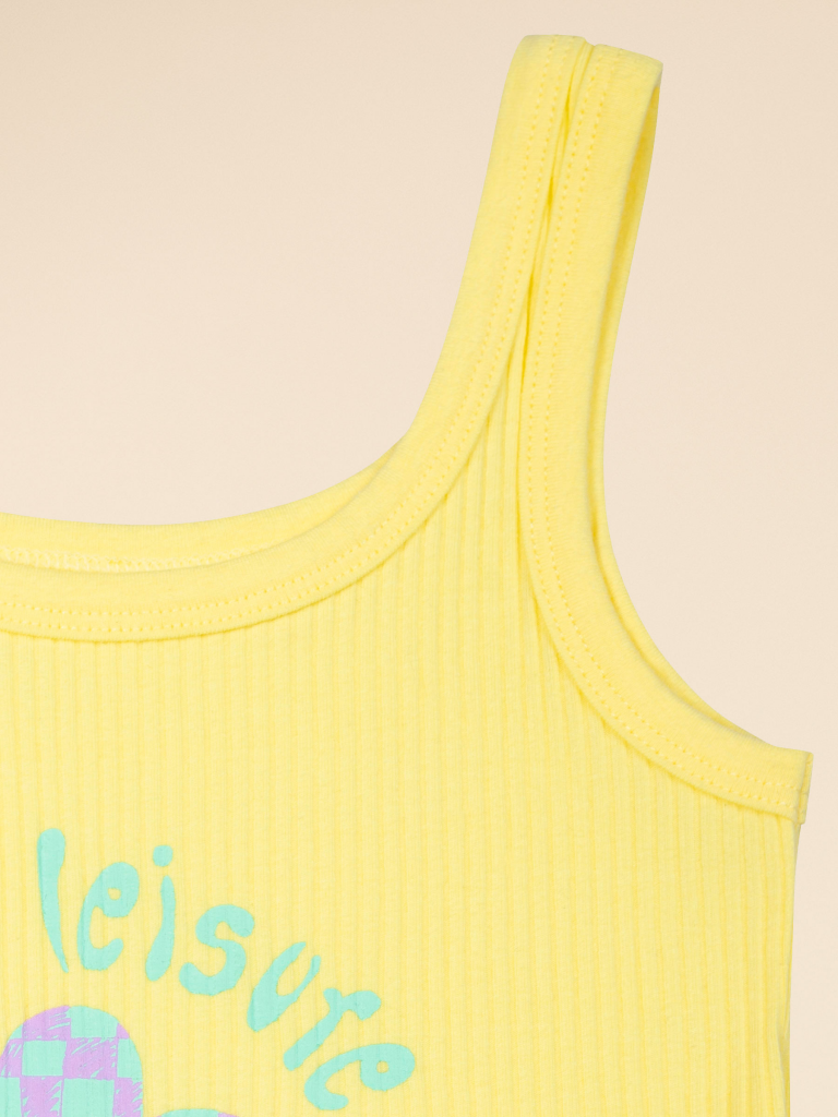 Если вы находитесь в поисках красивого и комфортного белья для своей дочки, обратите внимание на нашу изящную майку из модной ткани в рубчик для девочки. Модель выполнена из кашкорсе с высоким содержанием хлопка — изделие мягкое, воздухопроницаемое, кожа ребёнка дышит. Эластан в составе помогает майке сохранять великолепную форму, даже при частых стирках. Горловина и проймы обработаны эластичным пайпингом в тон — они не растягиваются, остаются в первозданном виде долго. Модель комфортно сидит по фигуре, подходит для носки под блузкой, джемпером, платьем. Изделие представлено в двух цветах. Классический белый вариант универсален, его можно надеть под белую блузку. Интересный бледно-желтый смотрится очень нежно и понравится любой девочке. Майку украшает забавный принт с позитивной надписью. Перевод принта: "Больше досуга, меньше давления". Принт мягкий и стойкий, замечательно переносит стирки. Отличный выбор для повседневной носки, сна, отдыха. Станет замечательным подарком, который способен вызвать искреннюю Состав: 95%хлопок 5%эластан Возрастная группа: Kids-Junior Сезон: Осень Год: 2023 Пол: Девочки