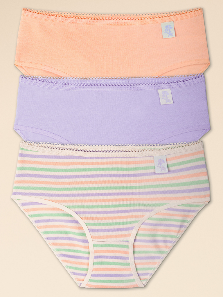 При выборе белья для своего ребёнка каждая мама хочет быть уверена в его качестве и в том, что ребёнку будет комфортно. Комплект трусов для девочки (3 шт.) полностью соответствует этим требованиям. Слипы средней посадки выполнены из ткани с высоким содержанием хлопка — модель мягкая, прекрасно пропускает воздух, давая коже ребёнка дышать. Благодаря эластану в составе изделие надолго сохраняет отличную форму, даже после многочисленных стирок. Качественная ткань и анатомически правильный крой обеспечивают идеальную посадку на теле — ребёнку комфортно на протяжении всего дня. Мягкая резинка исключает раздражение и трение. Трусы детские для девочки представлены в трёх актуальных вариантах расцветки: сиреневый (трендовый оттенок лаванды), розовый и в полоску пастельных оттенков. Нежные и по-настоящему красивые, эти цвета напоминают пирожные "макарон" и обязательно придутся по душе любой девочке. Слипы лаконичного дизайна, дополнены небольшими нашивками с лого на поясе. В линейке представлены хлопковые трусы следующих размеров: 2 (92): 3 (98): 4 (104): 5 (110): 6 (116): 7 (122): 8 (128): 9 (134): 10 (140): 11 (146). Модель подходит девочкам дошкольного возраста, девочкам младшего школьного возраста и девочкам-подросткам. Трусы слипы для девочки — идеальный выбор детского белья для повседневной носки. Модные трусы станут хорошим подарком дочери или внучке на любой праздник. Выбирайте нужный размер по таблице размеров на фото. Цвет товара на экране вашего устройства может отличаться от цвета изделия вживую. Товар возврату и обмену не подлежит. Состав: низ: 93%хлопок 7%эластан, низ2: 93%хлопок 7%эластан, низ2: 93%хлопок 7%эластан Возрастная группа: Kids Сезон: Весна Год: 2024 Пол: Девочки