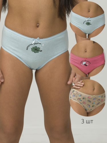 Трусики слипы с высокой посадкой для девочек. В комплекте 3 изделия. По талии эластик декорирован атласным бантиком. Обработка эластиком по ноге. Прочный принт. Состав: низ: 100%хлопок, низ2: 100%хлопок, низ:3 100%хлопок Возрастная группа: Kids Сезон: Весна Год: 2022 Пол: Девочки