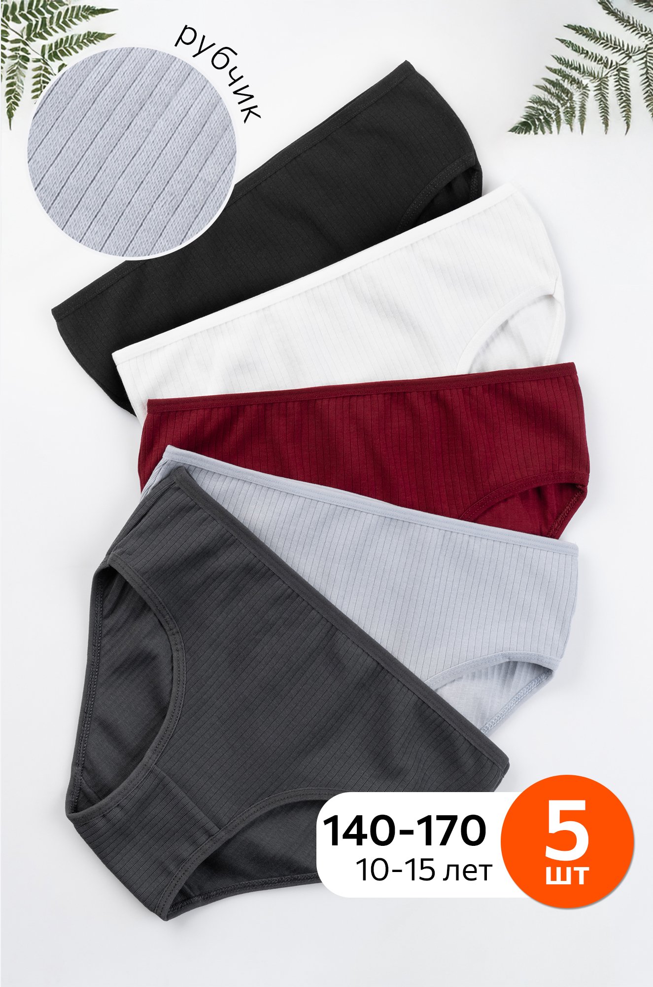 Безупречная классика! Набор трусов в рубчик для девочки и девочек подростков выполнен из трикотажного хлопка. В комплекте однотонные трусики базовых цветов с высокой посадкой, 5 шт.