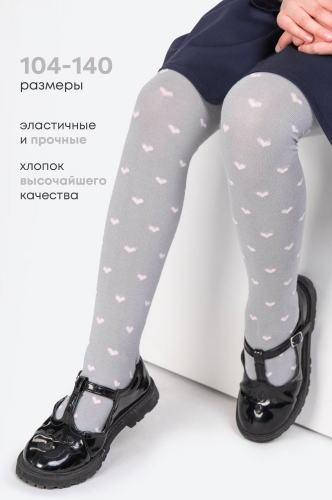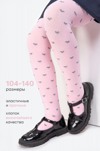 Детские колготки с рисунком Сердечки для девочек выполнены из натурального хлопка с добавлением синтетических волокон. Колготки хорошо тянутся и отлично сидят по ноге. Мягкие и приятные к телу колготки будут удобны в течение всего дня.