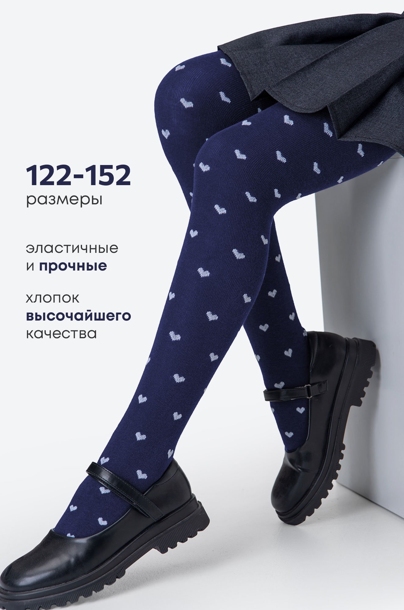 Детские колготки с рисунком Сердечки для девочек выполнены из натурального хлопка с добавлением синтетических волокон. Колготки хорошо тянутся и отлично сидят по ноге. Мягкие и приятные к телу колготки будут удобны в течение всего дня.