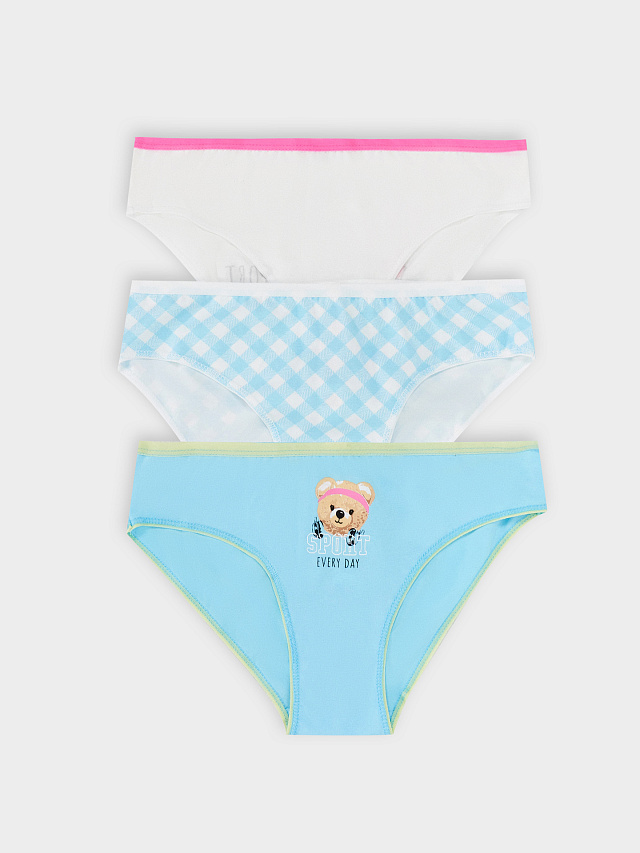 Трусы для девочек мультипак (3 шт.) голубые с печатью