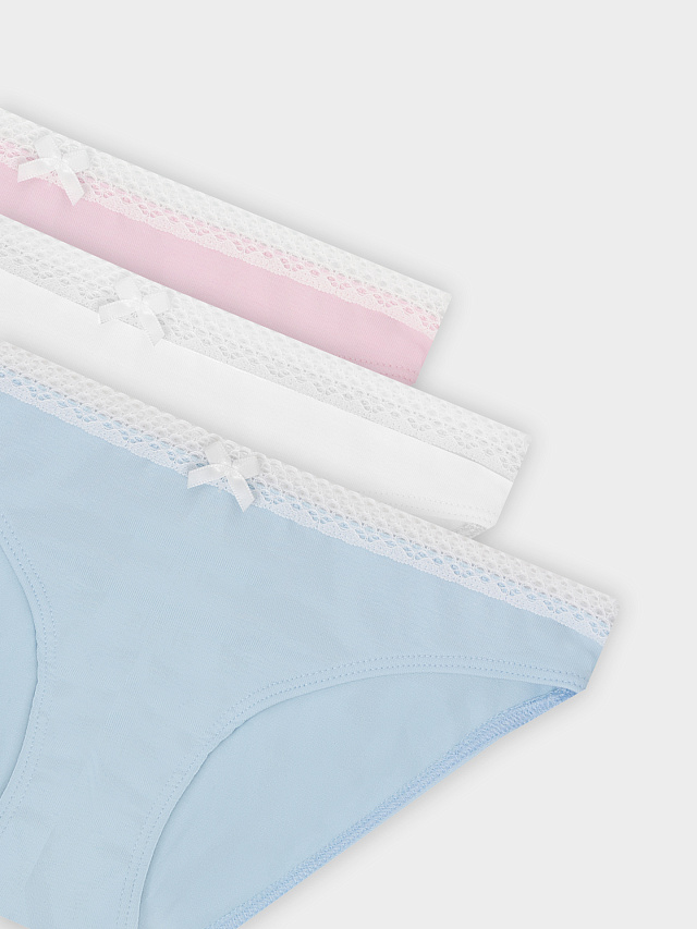 Набор для девочек создан для повседневного комфорта и мягкой заботы о нежной коже. Каждая модель выполнена с боковыми швами и цельными деталями переда, что обеспечивает идеальную посадку без дискомфорта. Также предусмотрена хлопковая ластовица для дополнительной гигиены и воздухообмена.