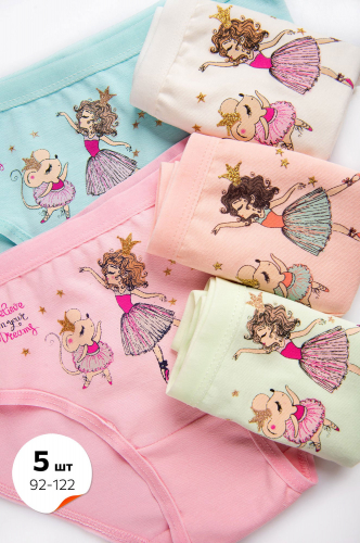 Комплект трусов из трикотажа 5 шт. идеален на каждый день. Благодаря мягкой эластичной резинке они плотно прилегают к телу. Аккуратно обработанные швы не натирают, а удобная средняя посадка дарит чувство комфорта даже во время активных движений. 95% хлопок, 5% эластан