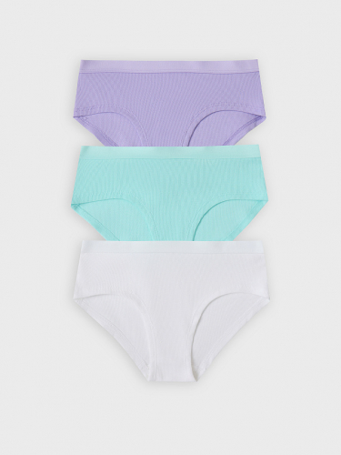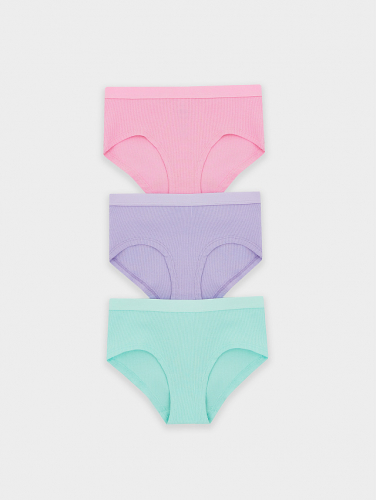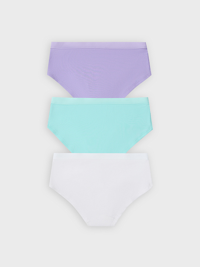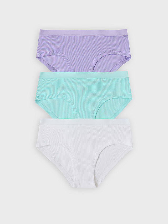 Мультипак (3 шт.) стильных трусиков-шортов из трикотажной рибаны – в мелкий рубчик. Нижние срезы подогнуты, на верхнем срезе – жаккардовая тесьма. Актуальный выбор!