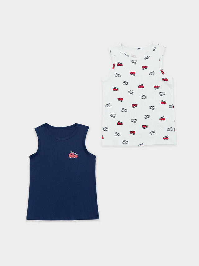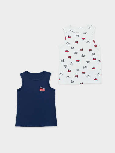 Майка для мальчиков мультипак (2 шт.) серые с пожарными машинками