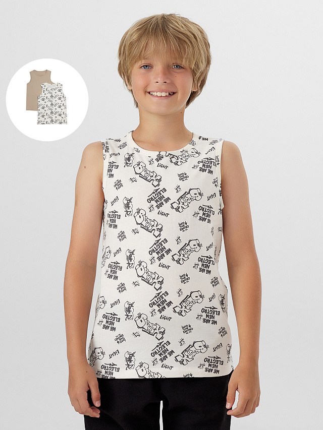 Широкий размерный ряд позволяет подобрать идеальный вариант для мальчиков разного возраста. Мягкая ткань, удобный крой и стильный дизайн делают эти майки любимой вещью в детском гардеробе.