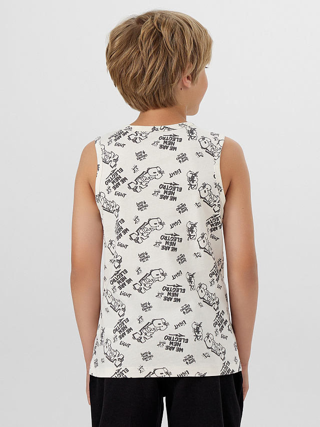Полуприлегающий силуэт с длиной до середины бедер создает удобную посадку, не ограничивая движений. Граффити-принт придает майкам современный стильный вид, делая их универсальными для разных ситуаций: посещения детского сада, школьных занятий, спортивных тренировок или использования в качестве нательного белья.