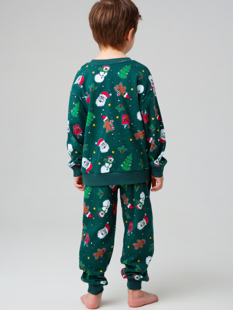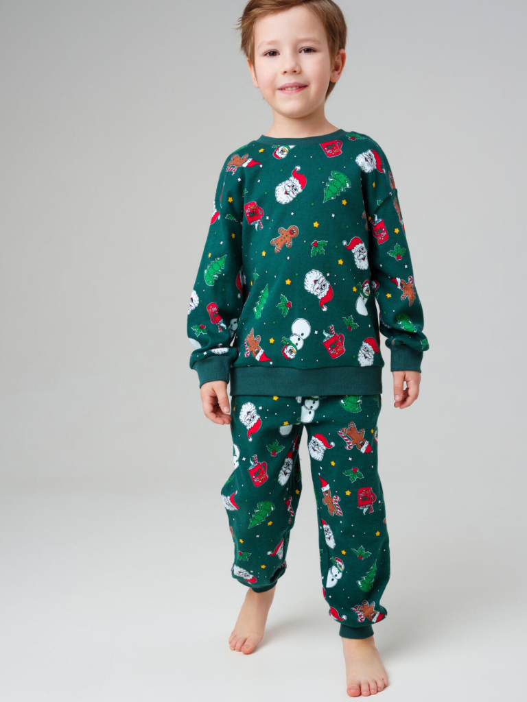 Зелёная детская трикотажная пижама для мальчика от PlayToday — удобный комплект для сна и отдыха, в который входит кофта с длинными рукавами и брюки на резинке. Эта детская пижама выполнена из мягкого хлопкового трикотажа, который дышит, приятен к телу и обеспечивает комфортный сон.Особенности модели:+ ткань трикотаж — натуральный, мягкий, подходит для чувствительной кожи+ кофта с длинными рукавами — обеспечивает тепло и уют в прохладные ночи+ брюки на резинке — удобная посадка+ отсутствие карманов — ничего не мешает спать и двигаться+ яркий принт — модный и весёлый дизайн, который понравится детям+ свободный крой — комфорт в течение всей ночи и свобода движенийЭта зелёная детская пижама для мальчика от PlayToday станет любимым комплектом для сна и игр дома. Трикотажная ткань хорошо пропускает воздух, сохраняет форму даже после многократных стирок и остаётся мягкой. Благодаря резинке на поясе и манжетах пижама хорошо фиксируется, не сползает и не задирается во сне.Совет по стилю:Пижаму можно носить как полный комплект или сочетать отдельно: кофту — с джоггерами или спортивными брюками PlayToday, а штаны — с футболками или лонгсливами. Таким образом, получится универсальная домашняя одежда для сна, игр и отдыха.Размеры: модель представлена на рост 98, 104, 110, 116 и 122 см — подходит для мальчиков от 3 до 7 лет.Модная зелёная детская пижама для мальчика из мягкого трикотажа от PlayToday — это комфорт, стиль и практичность для сна, игр и отдыха дома.