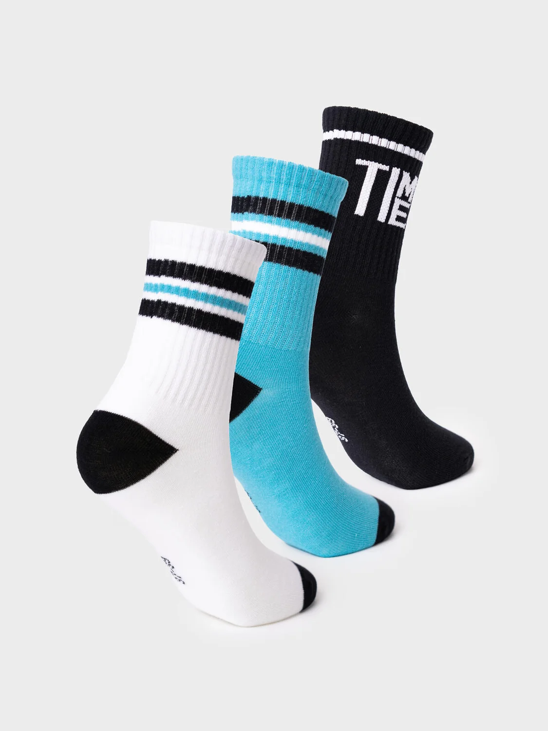 Набор носков три пары в комплекте для мальчика подростка. Носки выполнены из мягкого трикотажа с высоким содержанием хлопка. Усиленные пятка и мысок. Средняя длина до середины голени. Верх оформлен широкой резинкой с декоративными элементами.