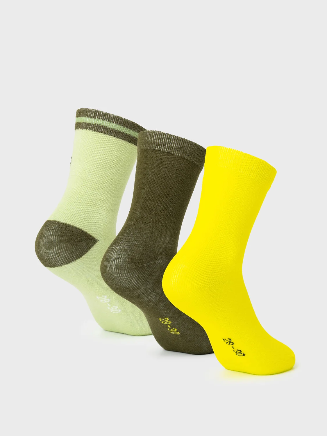 Набор из трех пар детских носков для мальчика. Удобная резинка не сдавливает ногу, а на стопе — аккуратная жаккардовая надпись с размером. Материал — мягкий хлопковый трикотаж.