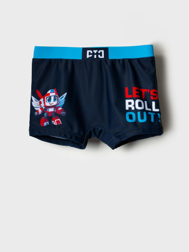 Плавки-шорты детские средней длины, прилегающего силуэта для мальчика. Изготовлены из эластичного трикотажа, с подкладкой для большего комфорта. Ткань устойчива к солнцу и солёной воде, благодаря UF-защите сохраняет насыщенность цвета и структуру волокон. В поясе — удобная резинка и регулируемый шнурок.