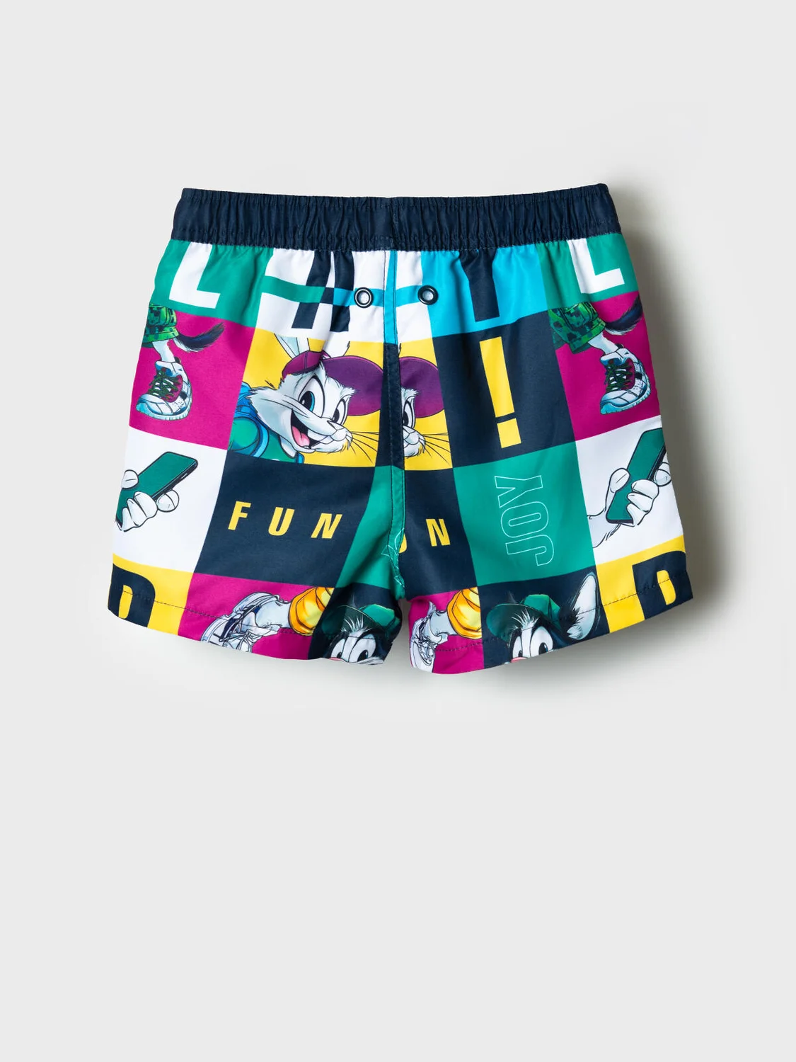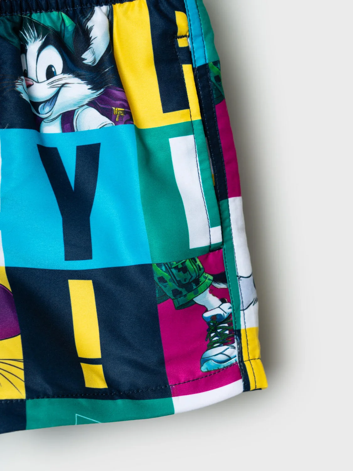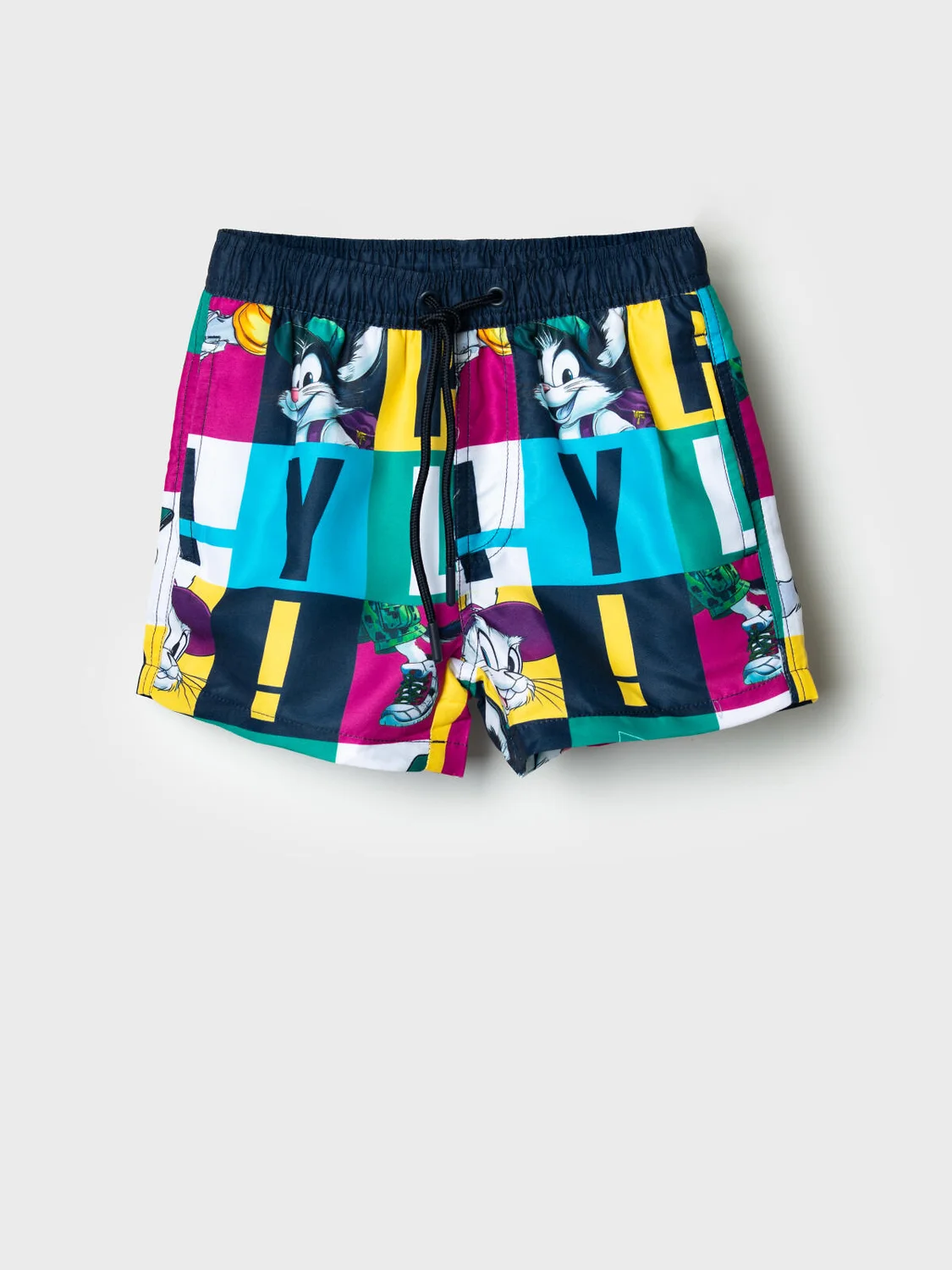Плавательные детские шорты из быстросохнущего материала с водоотталкивающей пропиткой для мальчика. Бордшорты (swimshort) средней длины. Модель с подкладкой из мягкой сетки в виде трусов, карманы из сетки. Пояс на резинке с дополнительной регулировкой по талии шнурком. Благодаря UF-защите, ткань сохраняет первоначальный вид даже при длительном пребывании на солнце. Отличный вариант для пляжа и бассейна.