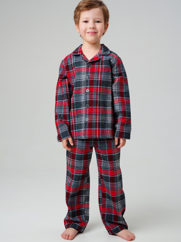 Клетчатая детская пижама из фланели для мальчика от PlayToday — уютный комплект для сна и отдыха, состоящий из рубашки на пуговицах и длинных брюк. Тёплая фланелевая ткань с микроначёсом дарит мягкость, согревает и делает сон ребёнка комфортным в любое время года.Особенности модели:+ рубашка на пуговицах — классическая застёжка, легко надеть и снять+ два кармана на рубашке — практичная деталь, которую дети любят+ тёплая фланель с микроначёсом — нежная, мягкая, согревающая+ брюки на резинке — удобная посадка, свобода движений ночью и днём+ клетчатый принт — стильный дизайн, который смотрится модно и по-взрослому+ натуральный хлопок в составе — безопасен для чувствительной кожи ребёнкаЭта пижама из фланели для мальчиков от PlayToday сочетает в себе уют, практичность и классический стиль. Благодаря мягкой ткани с начёсом она особенно хорошо подходит для холодного времени года. Брюки с резинкой обеспечивают удобную посадку, а свободный крой не сковывает движений. Фланель отличается прочностью и долговечностью — пижама сохраняет яркость клетки и мягкость даже после множества стирок.Совет по стилю:Эта клетчатая пижама для мальчиков универсальна: её можно использовать как полноценный комплект для сна или как домашнюю одежду. Рубашку удобно сочетать с джинсами или трикотажными брюками PlayToday, а фланелевые штаны отлично подойдут к футболкам и лонгсливам.Размеры: модель доступна на рост 98, 104, 110, 116 и 122 см — подходит для мальчиков от 3 до 7 лет.Модная клетчатая пижама для мальчика из фланели с микроначёсом от PlayToday — это уютная и практичная домашняя одежда, которая подарит тепло и комфорт каждый день.