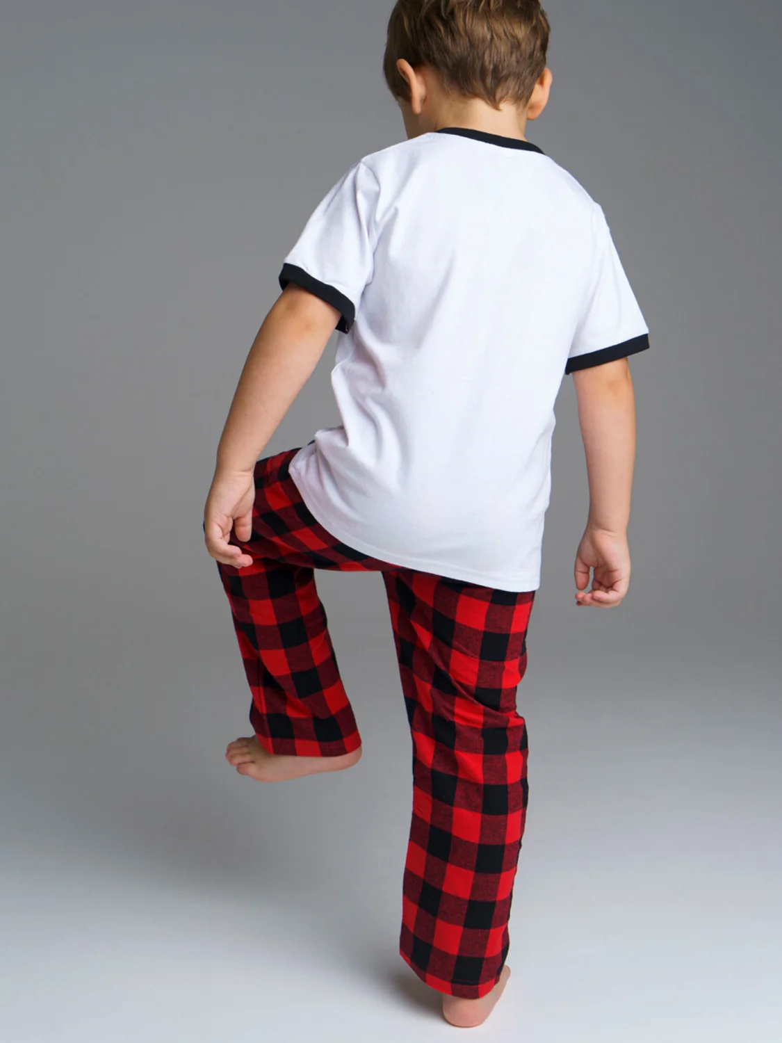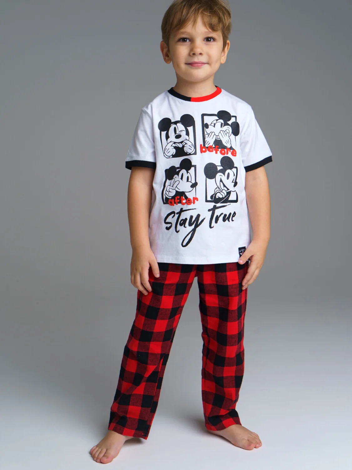 Комплект для мальчика Family look: футболка трикотажная прямого силуэта, брюки текстильные из мягкой фланели с карманами в боковых швах; пояс на резинке со шнурком
