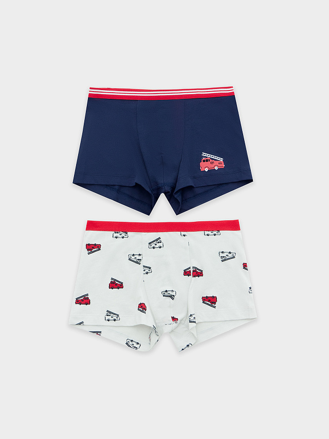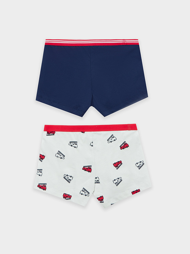 Трусы для мальчиков боксеры мультипак (2 шт.) в сером и синем цвете с машинками