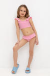 Раздельный купальник для девочки. Топ на регулируемых бретелях и плавки на эластичной резинке. Украшен оборками. Оригинальная набивка выполнена из стойких гипоаллергенных красителей.