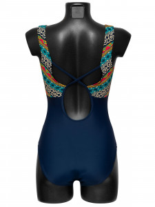 ВЫРЕЗ БЕДРА СРЕДНИЙ. ШИРОКИЕ БРЕТЕЛИ ПЕРЕХОДЯТ В ВЫРЕЗ ПО СПИНКЕ,