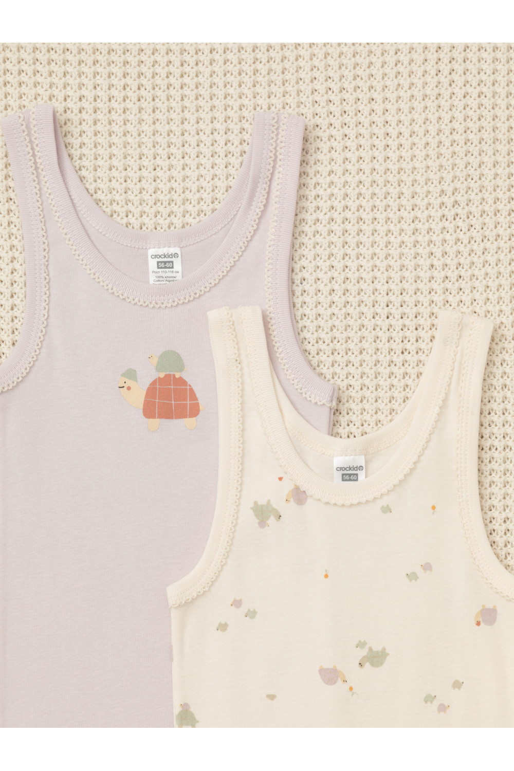 Трикотажные майки в комплекте 2 шт на лямках из натурального хлопка. Оригинальные набивка и принт выполнены из стойких, гипоаллергенных текстильных красителей. Изделие сохраняет цвет и форму после многократных стирок. Все трикотажные полотна производятся в соответсвии с нормами Швейцарского сертификата ЭкоТекс.