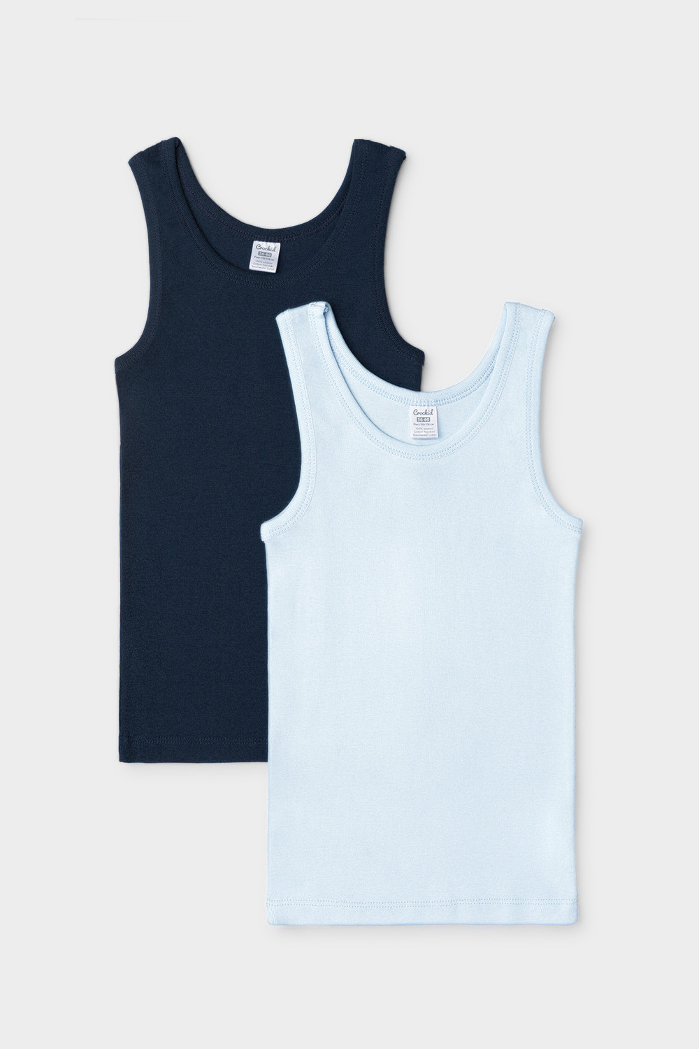 Трикотажные майки в комплекте 2 шт на лямках из натурального хлопка. Изделие сохраняет цвет и форму после многократных стирок. Все трикотажные полотна производятся в соответствии с нормами Швейцарского сертификата ЭкоТекс.