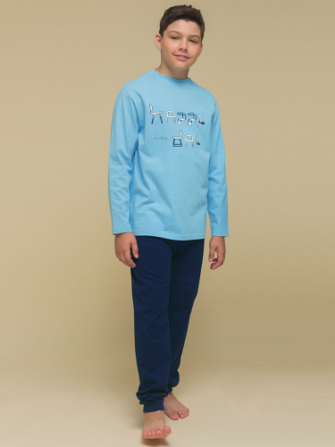 Уютная пижама для мальчика. Изделие выполнено из 100% хлопка — идеальный вариант для детской пижамы. Ткань из хлопка приятна на ощупь и превосходно пропускает воздух, позволяя коже ребёнка дышать. В пижаме из хлопка ребёнку будет комфортно, даже если он сбросит одеяло. Джемпер и брюки умеренного объёма, рукава свободные — пижама очень удобна для сна. В поясе брюк мягкая и широкая резинка — не перекручивается и не давит. Манжеты брюк и отделка горловины джемпера из эластичной рибаны — комплект удобно надевать и снимать. А также резинка отлично сохраняет форму в течение долгого времени. Брюки выполнены в практичном чёрном цвете и лаконичном дизайне. Джемпер актуального оттенка "серый меланж" украшен контрастными строчками по низу и рукавам — один из модных трендов. По переду забавный принт геймерской тематики — порадует любого мальчишку! Перевод: "Есть, спать, играть, повторять. Счастье". Принт мягкий и эластичный, отлично переносит многочисленные стирки. Комплект подходит для сна как дома, так и в детском садуСостав: верх: 100%хлопок, низ: 100%хлопокВозрастная группа: Сезон: ОсеньГод: 2023Пол: Мальчики