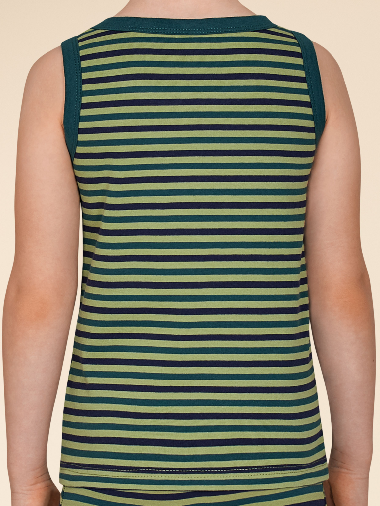 Майка детская из 100% хлопка для мальчика. Натуральный состав ткани обеспечивает изделию мягкость, гипоаллергенность и воздухопроницаемость. Майка детская для мальчиков комфортно сидит по фигуре, её можно надевать под рубашку, джемпер, свитер. Горловина и проймы изделия отделаны пайпингом в тон — они хорошо держат форму, надолго сохраняют аккуратный внешний вид. Хлопковая майка в сине-зелёную полоску лаконичного дизайна, без декоративных элементов — подойдёт под любую одежду. Майка детская для мальчика неприхотлива в уходе. Нательная майка для мальчика подходит для повседневной носки, отдыха, а также для сна и дома. Помните о правильном уходе за изделием: рекомендуется стирать при температуре не выше 30 °C, без предварительного замачивания, с изнанки. Это поможет сохранить качество и цвет майки на длительное время. Не забывайте о выборе правильного размера. Используйте таблицу размеров на фотографии, чтобы выбрать подходящий вариант для вашего мальчика. Обратите внимание, что цвет товара на экране вашего устройства может отличаться от реального. Состав: 100%хлопок Возрастная группа: Kids Сезон: Осень Год: 2024 Пол: Мальчики