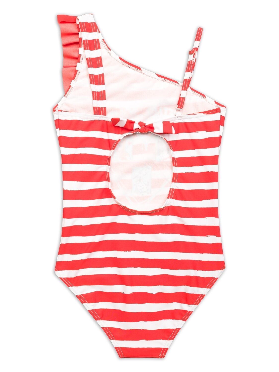Слитный купальник с асимметричными лямками, тонкая лямка с регулировкой длины. На передней части подклад. На спинке декоративный бантик. Мягкий эластичный принт с серебряным металликом. Перевод Челлендж найди свое настроение.