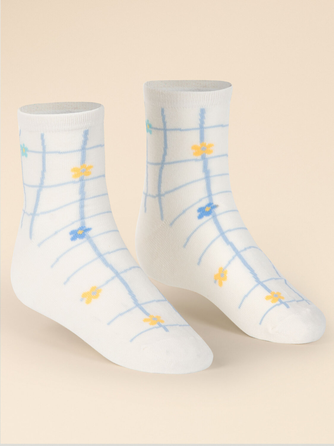Стильный набор детских носков. В комплект входят 2 пары. Мягкая резинка не пережимает ногу, при этом носки надёжно зафиксированы и не сползают. В составе ткани преобладает хлопок — носки мягкие, отлично пропускают воздух, позволяя коже ребенка дышать. Благодаря полиэстеру и эластану носки износостойкие, хорошо тянутся, прекрасно переносят многочисленные стирки. Милые носки подходят для повседневной носки в школу, детский сад, а также для спортивных тренировок и прогулок. Одна пара в наборе жёлтого цвета, вторая — белого. Обе пары украшает вытканный узор в виде клетки, будто нарисованной от руки, и цветочков. Модные носки станут отличным дополнением образа. Размерная линейка: 12-14, 14-16, 16-18, 18-20, 20-22. Подходят для круглогодичного применения. Набор носков детских станет отличным подарком для ребёнка на любой праздник. Выбирайте нужный размер по таблице размеров на фото. Цвет товара на экране вашего устройства может отличаться от цвета изделия вживую. Товар возврату и обмену не подлежит.