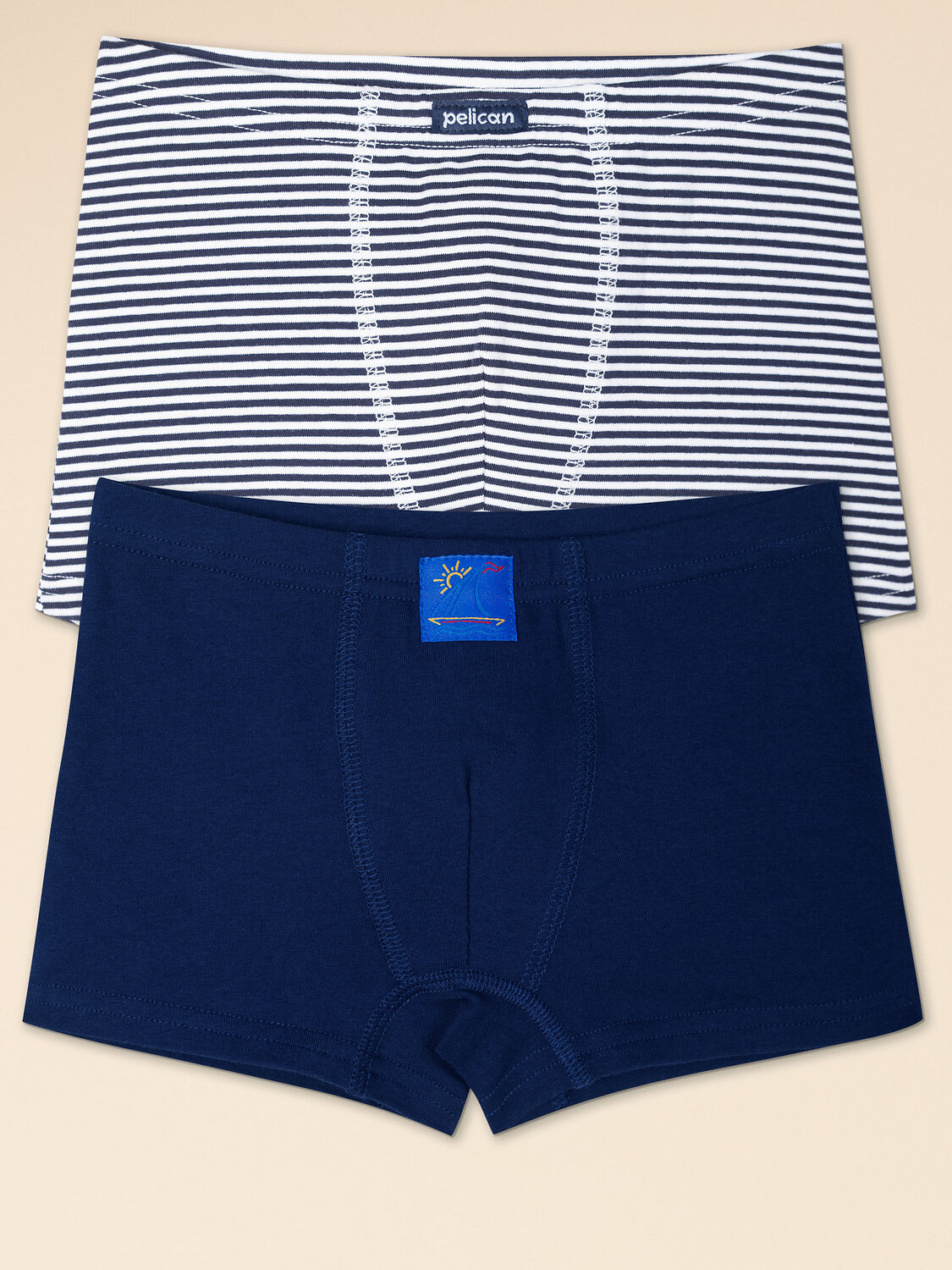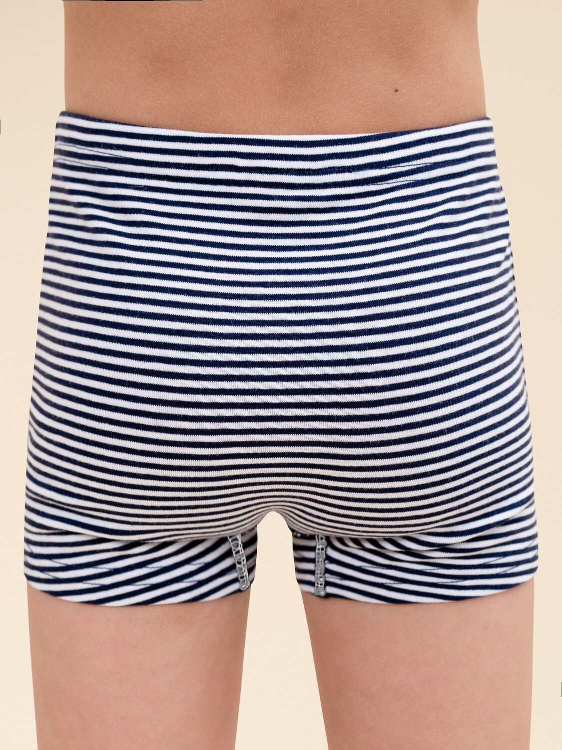 Если вы находитесь в поисках качественного и удобного белья для своего ребёнка, обратите внимание на наш комплект трусов для мальчика (2 шт.). Классические боксеры выполнены из ткани с высоким содержанием хлопка — изделие мягкое, прекрасно пропускает воздух, позволяя коже ребёнка дышать. Эластан обеспечивает эластичность и помогает белью сохранять отличную форму в течение долгого времени, даже после многочисленных стирок. Качественная ткань и анатомически правильный крой гарантируют комфортную посадку белья на теле — ребёнку удобно на протяжении всего дня. В поясе мягкая широкая резинка — не давит и не перекручивается. Трусы детские для мальчика представлены в двух вариантах расцветки: в сине-белую полоску с нашивкой-лого на поясе и однотонные тёмно-синие с нашивкой с симпатичным парусником на поясе. Принт мягкий и устойчивый, отлично переносит частые стирки. В линейке представлены хлопковые трусы следующих размеров: 1 (86): 2 (92): 3 (98): 4 (104): 5 (110): 6 (116): 7 (122): 8 (128): 9 (134): 10 (140): 11 (146). Модель подходит малышам, мальчикам дошкольного возраста, младшего школьного возраста и мальчикам-подросткам. Такие шорты трусы идеальны для повседневной носки, спорта и отдыха. Модные трусы — отличный подарок сыну или внуку. Выбирайте нужный размер по таблице размеров на фото. Цвет товара на экране вашего устройства может отличаться от цвета изделия вживую. Товар возврату и обмену не подлежит.