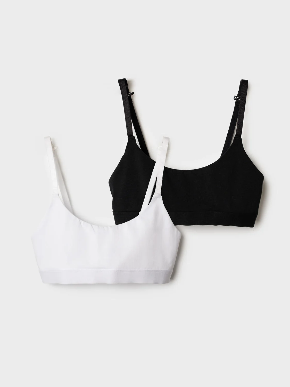 Эти мягкие подростковые бюстгальтеры для девочек созданы специально для подростков — с учётом анатомии, комфорта и потребностей в первые годы взросления. Эластичная ткань приятно прилегает к телу, не натирает, не давит и обеспечивает свободу движений. Базовые черный и белый бюстгальтеры для школьницы выглядят лаконично и аккуратно, поэтому отлично подходят под школьную форму, футболки, рубашки и спортивную одежду.