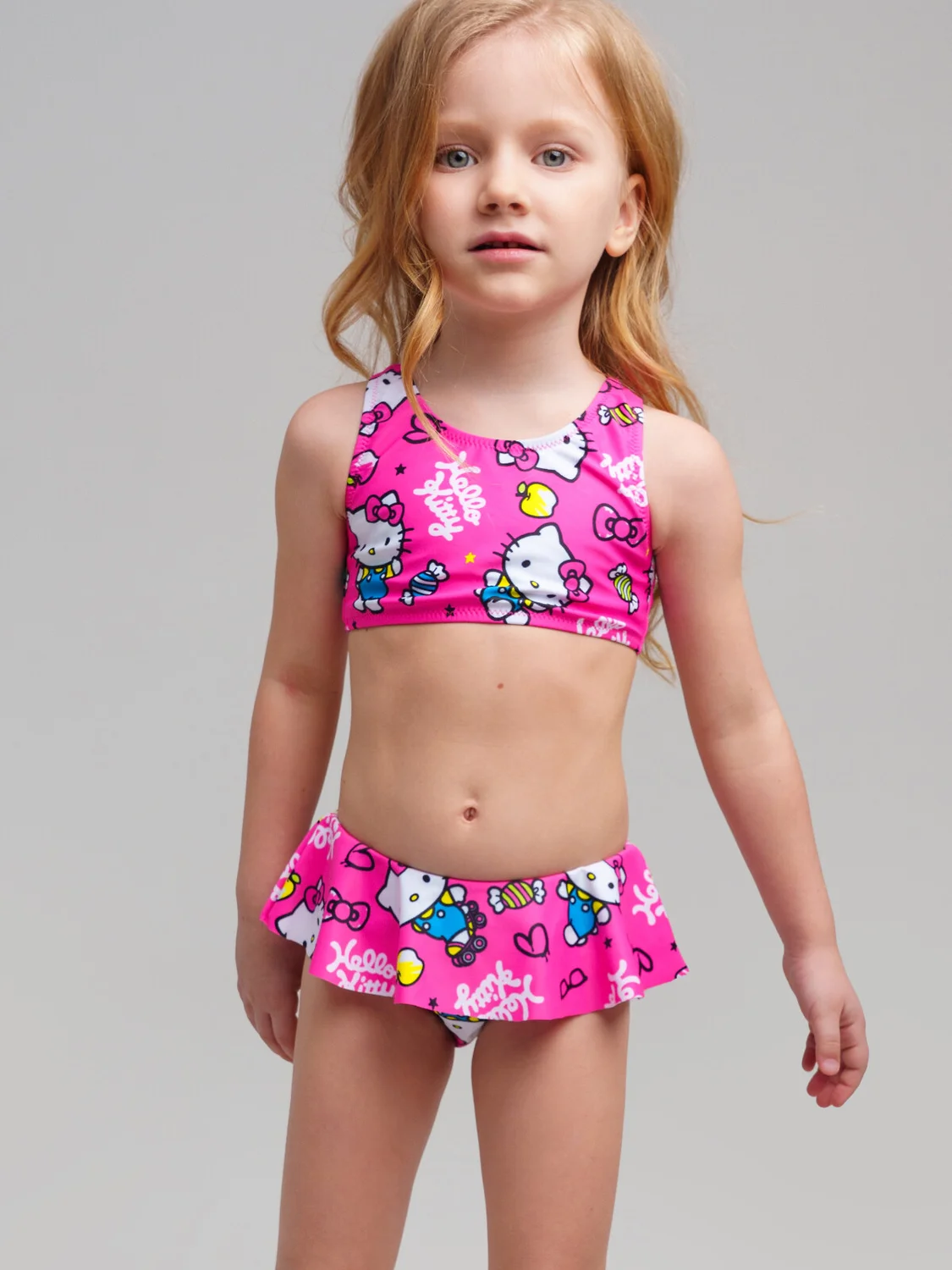 Купальник раздельный детский для девочки. Купальник для пляжа и бассейна выполнен из быстросохнущего материала. Благодаря хлор-защите и UF-защите ткань сохраняет первоначальный вид даже при длительном пребывании на солнце.