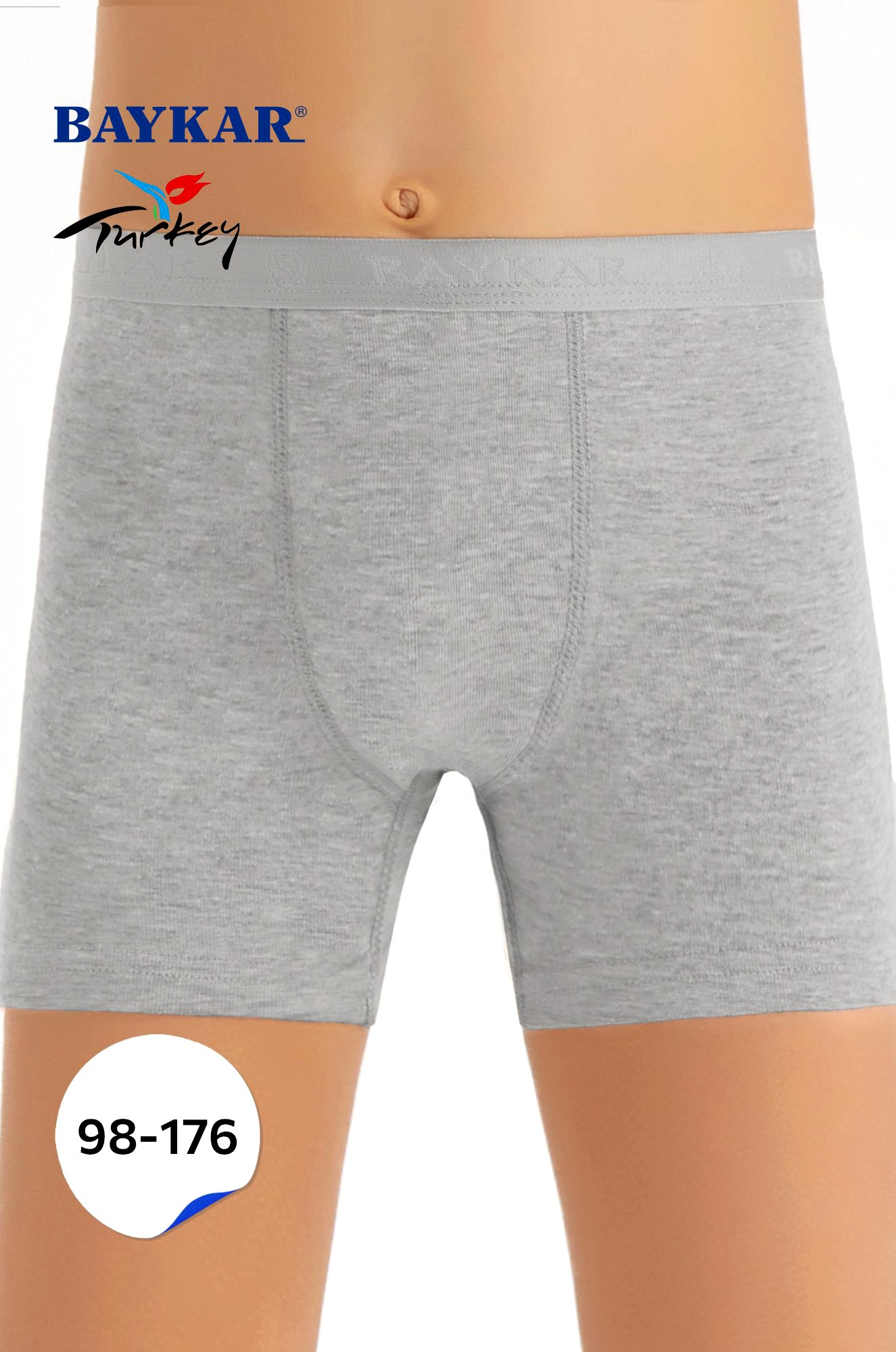 Серые боксеры из турецкого трикотажа подойдут для детского сада и школы, отдыха дома и сна. Трусы шорты идеальны для домашних дел, спорта и физкультуры. усы боксеры для мальчика и мальчиков-подростков выполнены из натурального 100% хлопка, который отлично пропускает воздух и приятен к телу. Боксеры для детей представлены базовом сером цвете.