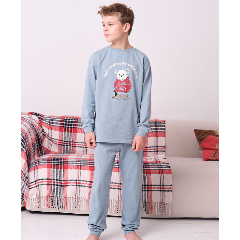Состав: верх: 100%хлопок, низ: 100%хлопокОписание: Детская пижама для мальчика со штанами. Натуральный состав ткани (100% хлопка) обеспечивает изделию мягкость, гипоаллергенность и воздухопроницаемость. Благодаря этому сон комфортный и качественный. Пижама для мальчика из хлопка - ребёнку будет тепло, даже если он сбросит одеяло. Джемпер и брюки умеренного объёма, рукава широкие и свободные — комплект для сна очень удобен. В поясе и по низу брюк мягкая и широкая резинка — не перекручивается и не давит. Отделка горловины джемпера из эластичной рибаны — ребёнку удобно надевать и снимать пижаму. А также рибана сохраняет отличную форму надолго. Домашний костюм для мальчика лаконичного дизайна с оригинальным прикольным принтом. Перевод принта: "чилим с моими снежинками". Новогодняя пижама для мальчика неприхотлива в уходе, без проблем переносит частые стирки. Подходит для сна как дома, так и в детском саду — отличный выбор для вашего ребёнка! Помните о правильном уходе за изделием: рекомендуется стирать при температуре не выше 30 °C, без предварительного замачивания, с изнанки. Это поможет сохранить качество и цвет пижамы на длительное время. Не забывайте о выборе правильного размера. Используйте таблицу размеров на фотографии, чтобы выбрать подходящий вариант для вашего мальчика. Обратите внимание, что цвет товара на экране вашего устройства может отличаться от реального.