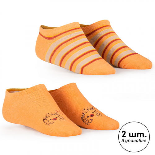 Белый/персиковый(2/33) Короткие носки для девочки, упаковка из 2-х пар. Носки с высоким содержанием хлопка и добавлением эластана не спадают, не садятся, не теряют форму. Не сползают с ног, с мягкой нетугой резинкой, которая не сдавливает ногу. Носочки подойдут к любой одежде для детей. Два веселых человечка и текстовый принт "позитивное мышление" не дадут заскучать вашему ребенку.