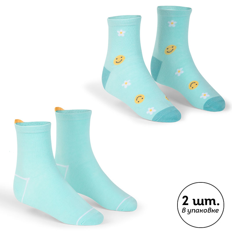 Ментол/ментол(27/27) Стильный набор детских носков. В комплект входят 2 пары. Мягкая резинка не пережимает ногу, при этом носки надёжно зафиксированы и не сползают. В составе ткани преобладает хлопок — носки мягкие, отлично пропускают воздух, позволяя коже ребенка дышать. Благодаря полиэстеру и эластану носки износостойкие, хорошо тянутся, прекрасно переносят многочисленные стирки. Милые носки подходят для повседневной носки в школу, детский сад, а также для спортивных тренировок и прогулок. Обе пары в наборе зелёного цвета (трендовый оттенок ментола), одну из них украшает вытканный узор в виде смайликов и цветочков, другую — забавный вытканный смайлик сзади. Он выходит за пределы резинки — актуальный тренд. Модные носки станут интересным дополнением образа. Размерная линейка: 12-14, 14-16, 16-18, 18-20, 20-22. Подходят для круглогодичного применения. Набор носков детских станет отличным подарком для ребёнка на любой праздник. Выбирайте нужный размер по таблице размеров на фото. Цвет товара на экране вашего устройства может отличаться от цвета изделия вживую. Товар возврату и обмену не подлежит.