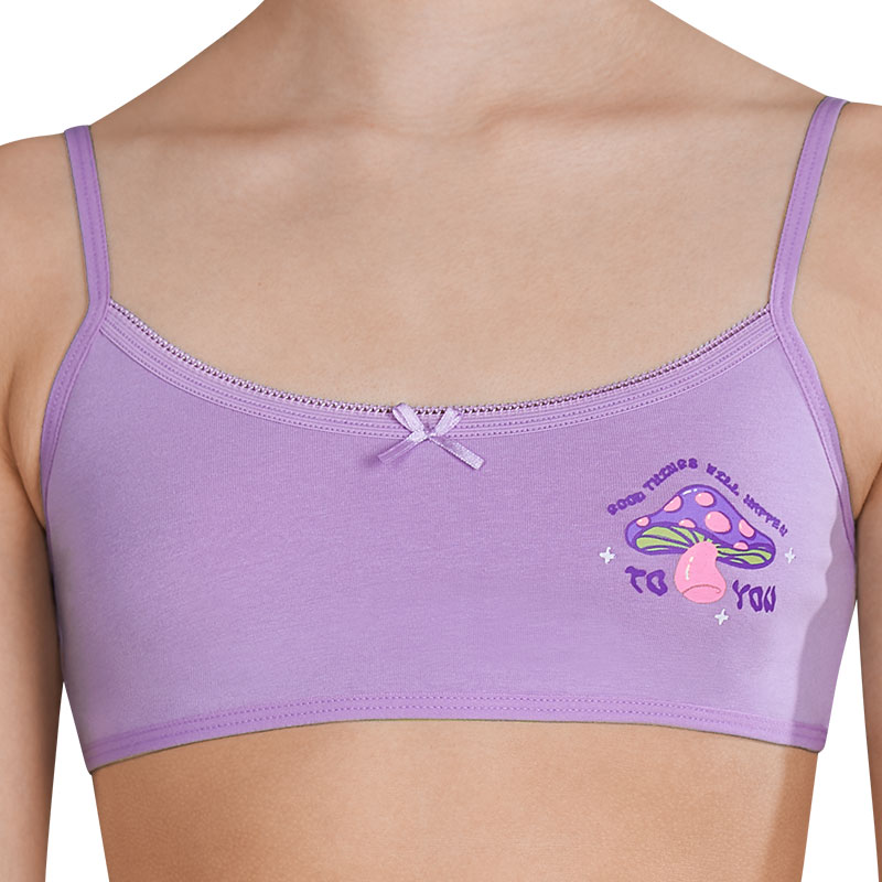 Лаванда(20) Укороченный топ для девочки. Бра выполнено из ткани с высоким содержанием хлопка — топ мягкий, дышащий, гипоаллергенный. Эластан обеспечивает модели прекрасную форму на протяжении длительного времени. Благодаря качественному материалу и правильному крою детский топ комфортно садится по телу. Тонкие мягкие бретели не сползают, исключают трение и раздражение. По проймам окантовка из пайпинга в тон изделия, благодаря чему они не растягиваются. Бра украшено позитивным принтом в виде грибочка, надпись переводится: «хорошие вещи произойдут с тобой», принт устойчивый и не боится частых стирок. Стильный топ обязательно понравится каждой маленькой моднице. Кроп топ детский отлично подходит для носки под одеждой. Помните о правильном уходе за изделием: рекомендуется стирать при температуре не выше 30 °C, без предварительного замачивания, с изнанки. Это поможет сохранить качество и цвет топа на длительное время. Не забывайте о выборе правильного размера. Используйте таблицу размеров на фотографии, чтобы выбрать подходящий вариант для вашей девочки. Обратите внимание, что цвет товара на экране вашего устройства может отличаться от реального.