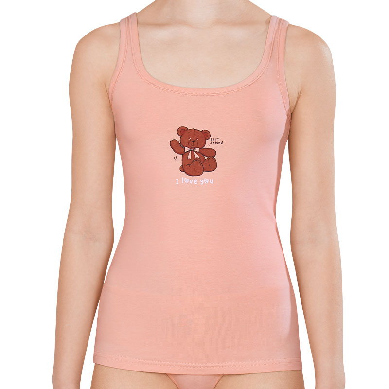 Пудра(35) Майка детская для девочки. Нательная майка для девочки выполнена из ткани с высоким содержанием хлопка — она приятна на ощупь, гипоаллергенна и великолепно пропускает воздух. Эластан помогает изделию сохранять отличную форму в течение длительного времени. Качественная ткань и правильный крой гарантируют комфортную посадку. Горловина и проймы обработаны эластичным пайпингом в тон — они не растягиваются и надолго сохраняют прекрасный внешний вид. Хлопковая майка нежного пудрового цвета подойдёт любой девочке. Красивая майка декорирована принтом в виде милого медвежонка, надписи переводятся: «лучший друг», «я люблю тебя». Принт мягкий и устойчивый, легко переносит частые стирки. Майка детская для девочек — идеальный выбор для повседневной носки под одеждой, а также она подходит для летнего отдыха и в качестве домашней одежды. Помните о правильном уходе за изделием: рекомендуется стирать при температуре не выше 30 °C, без предварительного замачивания, с изнанки. Это поможет сохранить качество и цвет майки на длительное время. Не забывайте о выборе правильного размера. Используйте таблицу размеров на фотографии, чтобы выбрать подходящий вариант для вашей девочки. Обратите внимание, что цвет товара на экране вашего устройства может отличаться от реального.