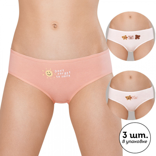 Сиреневый/белый/желтый(42/2/11) Любая мама заботится о комфорте своего ребёнка и хочет выбрать для него только по-настоящему качественное бельё. Наш комплект (3 шт.) слипов средней посадки для девочки прекрасно подходит под эти запросы. Трусы выполнены из ткани, в составе которой преобладает хлопок — они мягкие, отлично пропускают воздух, позволяя коже ребёнка дышать. Благодаря эластану изделие в течение длительного времени сохраняет превосходную форму. Качественный материал и правильный крой обеспечивают идеальную посадку на теле — ребёнок чувствует себя комфортно на протяжении всего дня. Мягкая резинка не давит и не натирает. В комплекте представлены белые трусы, декорированные сплошным принтом в актуальном стиле граффити с позитивным настроением. Сиреневые трусы лаконичного дизайна, дополненные вшивным ярлыком с изображением смайлика. И трусы трендового нежного желтого оттенка, они украшены милым принтом с жизнеутверждающим посылом. Перевод принта: "Больше досуга, меньше давления". Красивые и стильные, слипы наверняка придутся по душе лю