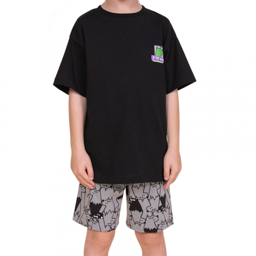 Состав: верх: 100%хлопок, низ: 100%хлопокОписание: Стильная и уютная пижама для мальчика. В составе ткани 100% хлопка — идеально для детской одежды! Модель приятна на ощупь, прекрасно пропускает воздух, позволяя коже ребёнка дышать. При этом в пижаме из хлопка ребёнку будет уютно, даже если он сбросит одеяло. Всё это обеспечивает комфортный и качественный сон. Футболка и удлинённые шорты, плечо спущено, рукава широкие и свободные — пижама на мальчика очень удобна для сна. Широкая и мягкая резинка в поясе не перекручивается и не давит. Отделка горловины из эластичной рибаны — она не растягивается, ребёнку удобно надевать и снимать пижаму. Шорты декорированы сплошным принтом с забавными собаками, будто нарисованными от руки. Футболку чёрного цвета украшает забавный принт в виде зелёной собаки и надписи "я так вижу". В линейке представлены следующие размеры: 2 (92): 3 (98): 4 (104): 5 (110): 6 (116), 7 (122): 8 (128): 9 (134): 10 (140): 11 (146). Хлопковый комплект идеален для сна и отдыха дома — прекрасный выбор для вашего ребёнка! Пижама с шортами для мальчика подходит для круглогодичного использования. Домашний комплект — замечательный подарок сыну, внуку, брату на любой праздник. Выбирайте нужный размер по таблице размеров на фото. Цвет товара на экране вашего устройства может отличаться от цвета изделия вживую.