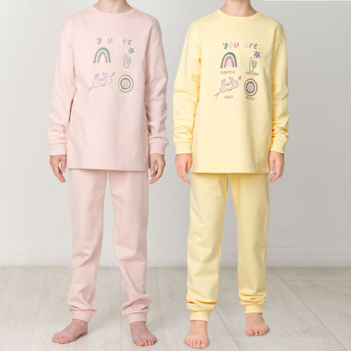 Состав: верх: 100%хлопок, низ: 100%хлопокОписание: Комплект для девочки и футера с начесом - джемпер и брюки. Комплект из 100% хлопка. Джемпер и брюки на манжете - удобно, можно брать на вырост и без примерки. Удобная, мягкая, дышащая одежда для дома. Комфортно спать и играть. Используя пижаму как одежду для сна, можно не беспокоится, что ребенок не укрывается.