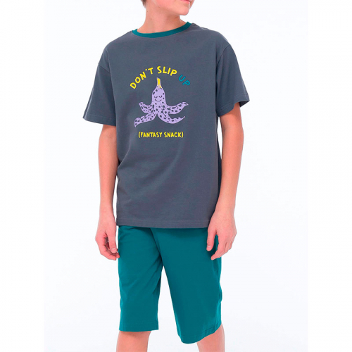 Состав: верх: 100%хлопок, низ: 100%хлопокОписание: Стильная и уютная пижама для мальчика. В составе ткани 100% хлопка — идеально для детской одежды! Модель приятна на ощупь, прекрасно пропускает воздух, позволяя коже ребёнка дышать. При этом в пижаме из хлопка ребёнку будет уютно, даже если он сбросит одеяло. Всё это обеспечивает комфортный и качественный сон. Футболка и удлинённые шорты, плечо спущено, рукава широкие и свободные — пижама на мальчика очень удобна для сна. Широкая и мягкая резинка в поясе не перекручивается и не давит. Отделка горловины из эластичной рибаны — она не растягивается, ребёнку удобно надевать и снимать пижаму. По переду забавный принт — порадует любого мальчишку! Принт мягкий и эластичный, отлично переносит многочисленные стирки. Хлопковый комплект идеален для сна и отдыха дома — прекрасный выбор для вашего ребёнка! Пижама с шортами для мальчика подходит для круглогодичного использования. Домашний комплект — замечательный подарок сыну, внуку, брату на любой праздник. Выбирайте нужный размер по таблице размеров на фото. Цвет товара на экране вашего устройства может отличаться от цвета изделия вживую.