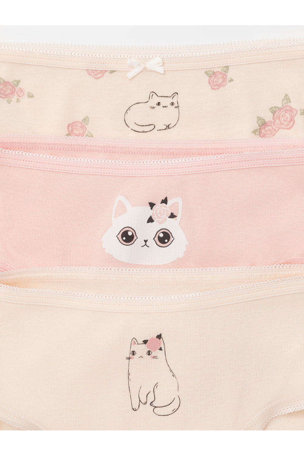 Набор трусы/ уп К 1909-3уп св.лосось, св.жемчуг, котики в цветах Ал