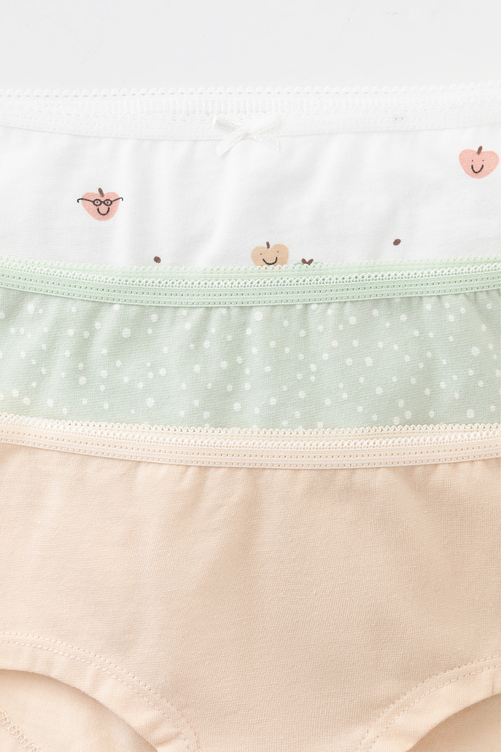 Трусы/ уп К 1964-3уп зеленая лилия, бежевый, сахар, яблочки