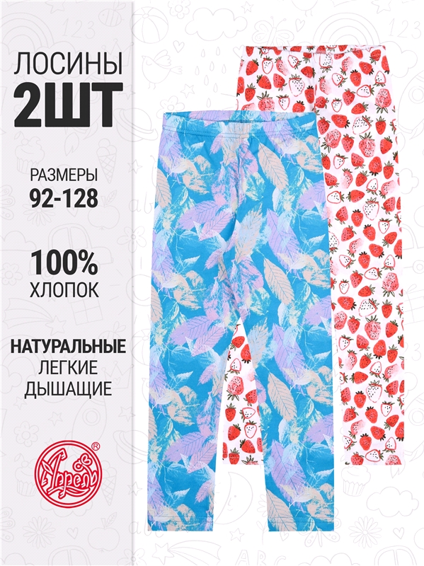 кулир / хлопок 100% - / клубника на белом+отпечатки листьев на голубом / -