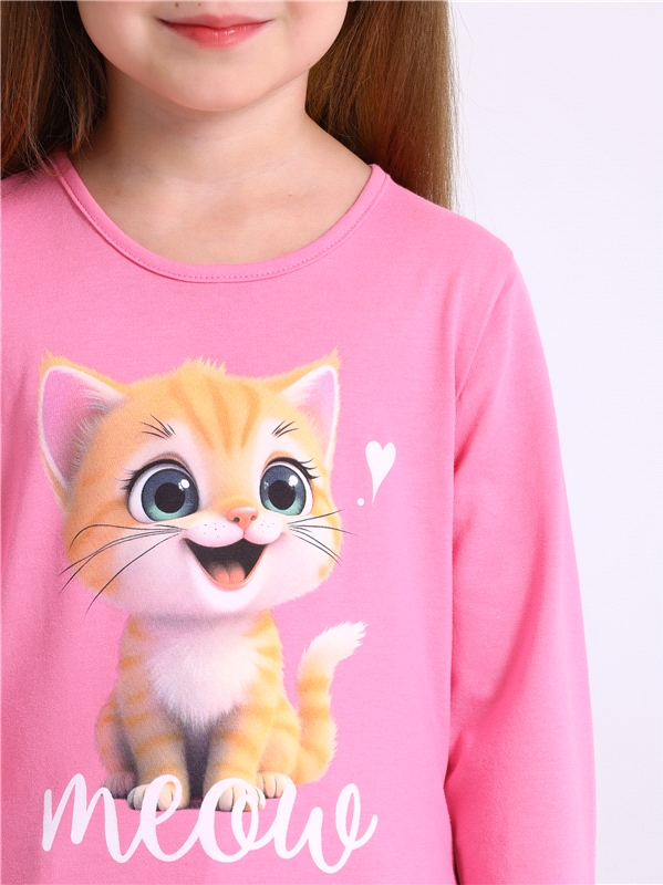 кулир / хлопок 100% - / розовый268+ярко-розовые сердечки на темно-сиреневом / Котенок с сердечком