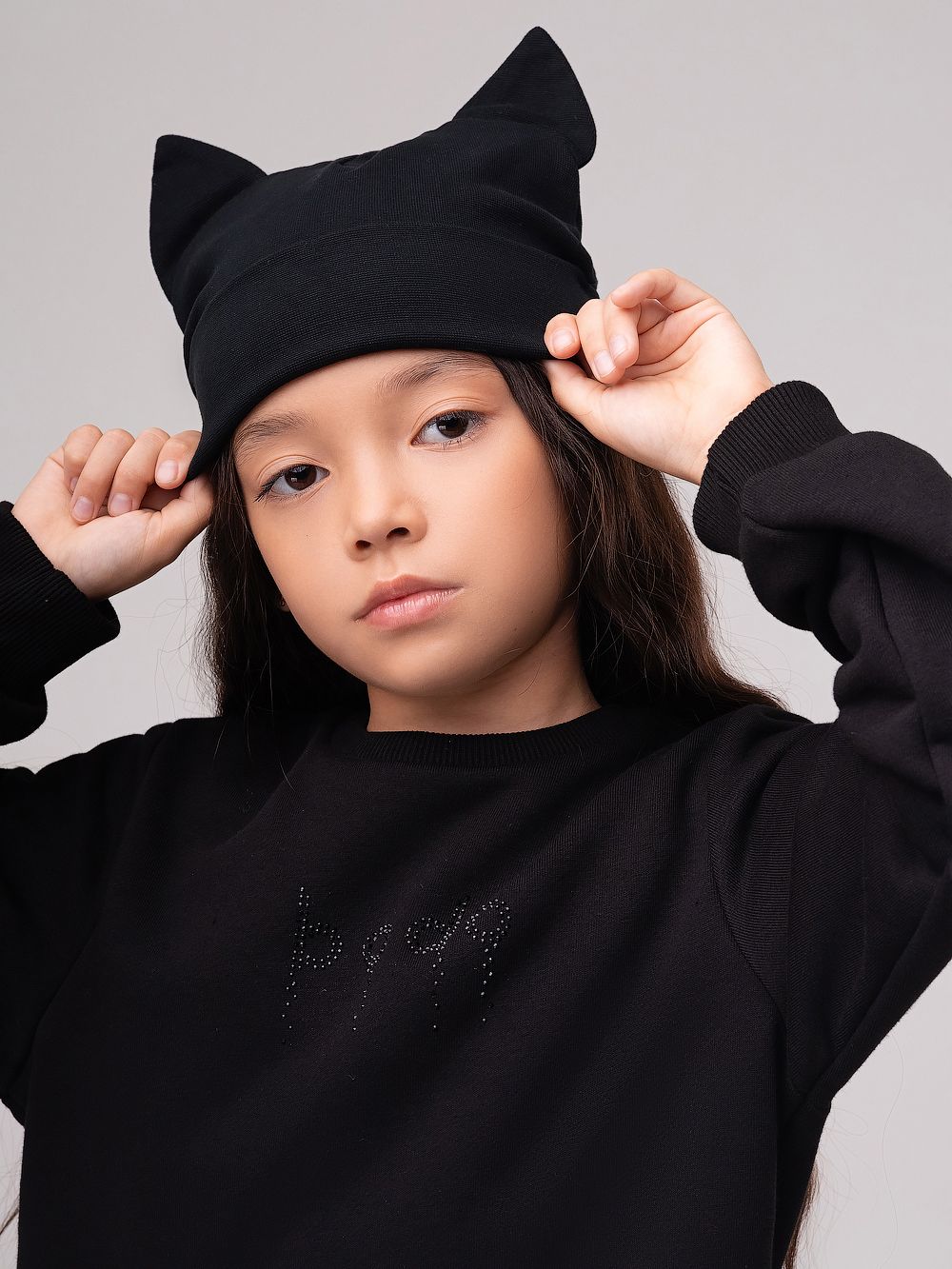 Шапка двойная с ушками кошки, высота подворота регулируется самостоятельно, так же возможно носить и без подворота. Подойдёт на весну, осень и весь период демисезона.
