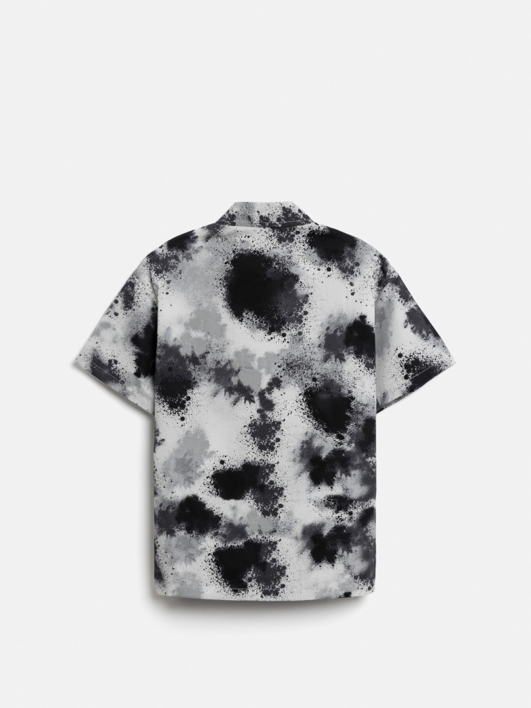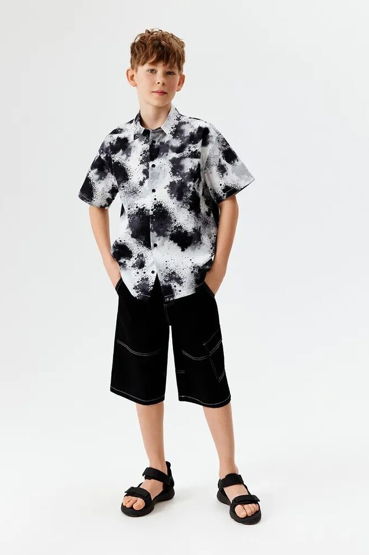 Детская рубашка для мальчика – это идеальное дополнение к гардеробу ребенка для создания модных образов. Ткань обеспечивает комфорт во время ношения и позволяет коже дышать. Классический рубашечный воротник придает модели аккуратный вид. Стильный принт в виде распыленной краски делает образ более эффектным и оригинальным. Застежка на петли и пуговицы добавляет удобство в ношении. Стилизуйте рубашку в черно-белом цвете с джинсами для создания модного образа на прогулки в теплую погоду.