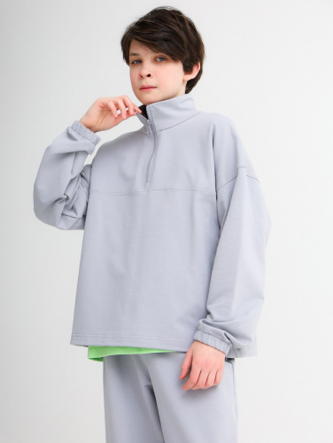 Анорак over size. Воротник- стойка с частичной застежкой на тракторную неразъемную молнию. Рукав втачной со спущенным плечом. Обработка по низу изделия и манжеты из кашкорсе. Отрезная кокетка на полочке и спинке. Декоративная отстрочка по срезам. На спинке объемная нашивка.