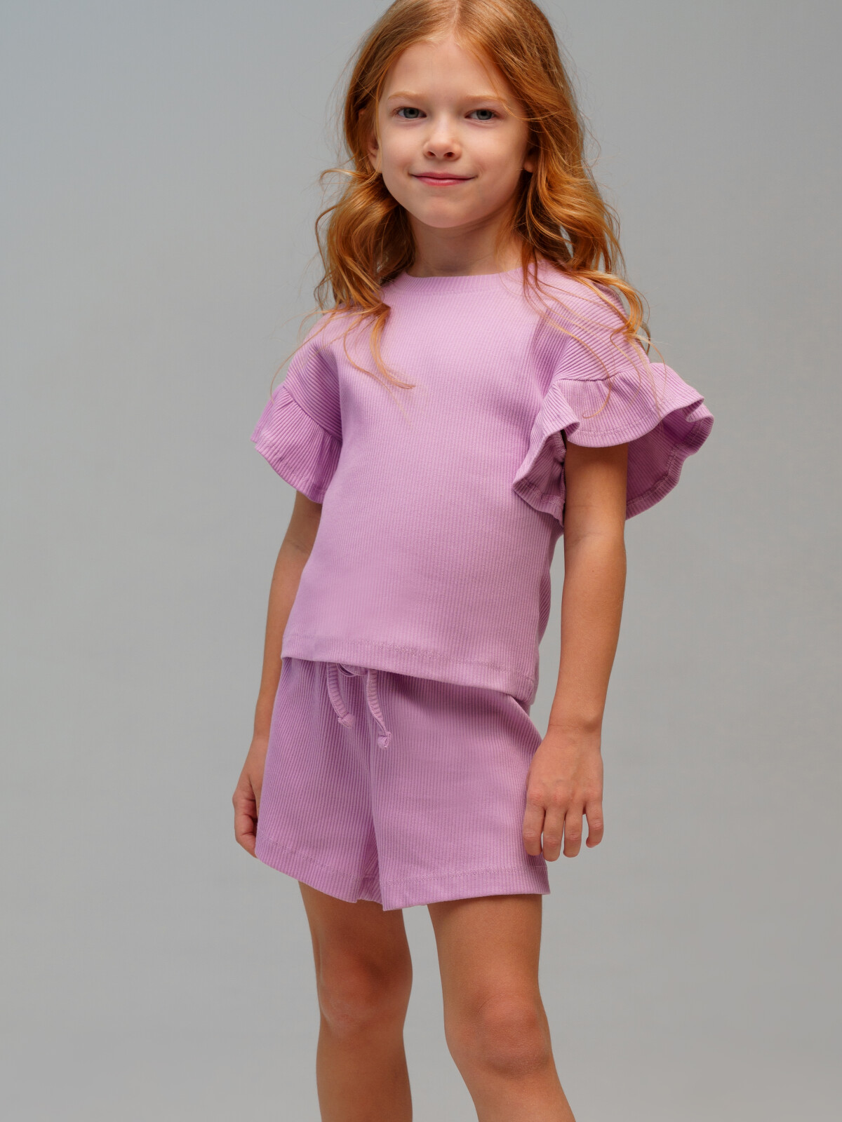 Пижама детская для девочки. Футболка и шорты из эластичного и приятного на ощупь трикотажа. Шорты на резинке. Высокое содержание хлопка 95%. Благодаря наличию эластана в составе ткани изделие держит форму и меньше мнется.